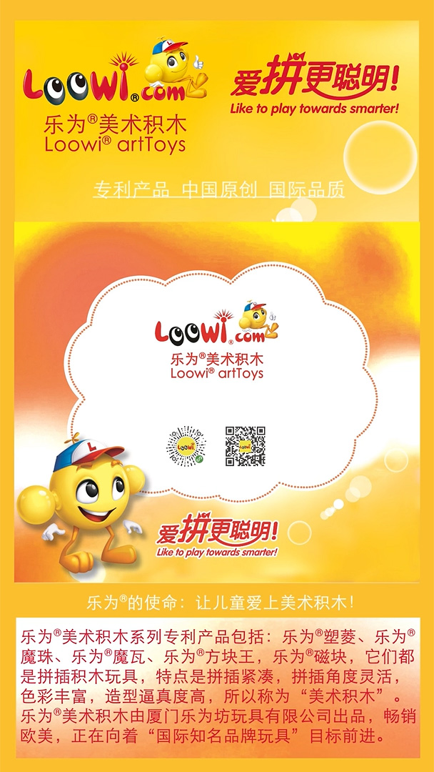 廈門(mén)樂(lè)為坊玩具有限公司原創(chuàng)設(shè)計(jì)、研發(fā)、加工、營(yíng)銷(xiāo)玩具產(chǎn)品,專(zhuān)注于拼插美術(shù)積木,擁有注冊(cè)商標(biāo)樂(lè)為